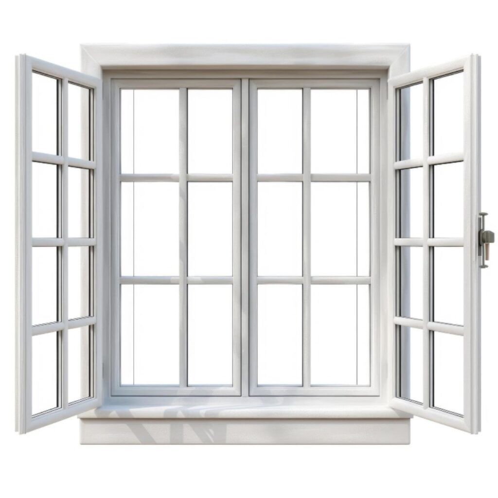 French windows consist of two side-hinged casement panels that open from the center, creating a wide and elegant opening. Commonly used to connect interiors to patios, balconies, or gardens, they enhance natural light flow. Their timeless design suits both classic and modern homes.